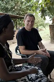 Jan van Aken speaking with Milcah Lalam, the leader of the Sudanese NGO RECONCILE Peace Institute in 2010