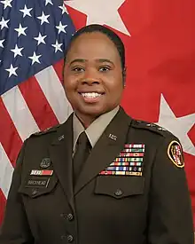 From April 2017 to May 2018, Birckhead served as the director of legislative affairs of the Maryland National Guard.[7] She served as the assistant adjutant general from June 2018 to April 2023.[6] She had a dual-hatted assignment from March 2020 to May 2023 as the deputy commanding general-reserve affairs of the United States Army War College.[6] Birckhead was a senior advisor in the Bureau of Trust Funds Administration in the within the Bureau of Indian Affairs.[3] In March 2023, Birckhead was inducted into the Maryland Women's Hall of Fame.[8] In April 2023, she was promoted to major general and named by governor Wes Moore as the 31st adjutant general of Maryland.[6] She heads the Maryland Military Department. She is the only Black woman leading a state military.[9]