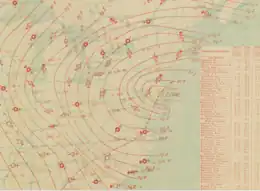 - 1 2 3 4 "Areas of Low Pressure" (PDF). Monthly Weather Review. 14 (1): 4–5. January 1886. Bibcode:1886MWRv...14....4.. doi:10.1175/1520-0493(1886)14[4:AOLP]2.0.CO;2. Retrieved 2015-02-21.