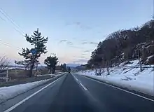 The JR Gonō Line closely parallels the highway for much of its route. Also known as the Ōmagoe-kaidō,[2] there are several attractions along the winding coastal portion of the highway including Furofushi Onsen and the World Heritage Site, Shirakami-Sanchi around the border between Aomori and Akita prefectures.[3] The registration of Shirakami-Sanchi as a World Heritage Site has resulted in an increase in the average daily traffic levels along the highway.[4]