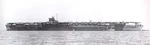 Amagi (天城) was an Unryū-class aircraft carrier built for the Imperial Japanese Navy during World War II. Named after Mount Amagi,[1] and completed late in the war, she never embarked her complement of aircraft and spent the war in Japanese waters. The ship capsized in July 1945 after being hit multiple times during airstrikes by American carrier aircraft while moored at Kure Naval Base. Amagi was refloated in 1946 and scrapped later that year.