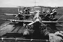 At 0530 on 19 June, Mogami launched two reconnaissance floatplanes. Later in the day, the Mobile Fleet's aircraft attacked Task Force 58 off Saipan, but suffered overwhelming losses in the "Great Marianas Turkey Shoot". At 2030 on 20 June, two hours after she was hit by torpedoes by Grumman TBM Avengers from the aircraft carrier USS Belleau Wood, Hiyō exploded and sank. That night, Mogami retired with the remnants of the Japanese fleet to Okinawa, and from there to Hashirajima.[5]