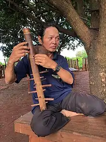 Jarai man playing the traditional string instrument