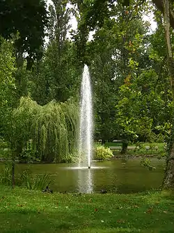 The garden was created between 1867 and 1870 to designs by Jean-Charles Adolphe Alphand, who also designed Paris's Parc Monceau, Bois de Boulogne, and Bois de Vincennes. It consists of two major sections linked by small tunnels: a French garden (3 hectares) with rose garden and terraced walk planted with four rows of Tilia nearly 100 years old, and an English-style park (4 hectares) with fine trees and a large pond.