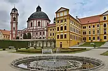 The Jaroměřice nad Rokytnou Castle is one of the main sights of the whole region. The building is one of the largest Baroque works in all of Europe. It was built in 1700–1737 by reconstruction of a Renaissance structure from the 16th century. At the same time, French gardens and an English park were established. Since 1947, it has been owned by the state and opened to the public.[3]