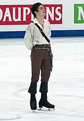 Fernández started his season at the 2012 Finlandia Trophy[37] where he won the bronze medal. His first Grand Prix event of the season was Skate Canada, where he beat defending Skate Canada and World champion, Patrick Chan, to take the gold medal. Fernández became the first Spaniard to win a gold medal in the Grand Prix series. Despite his fourth place at the 2012 NHK Trophy, he qualified for the Grand Prix Final. He finished fourth overall at the final after winning the free program with a 4S-3T jump combination, 4S, and 4T.[38] He became the second European to execute three quads in one program — the first being Brian Joubert who landed a 4T-2T combination, 4T, and 4S at the 2006 Cup of Russia[39] — and the first European to do so with a quad-triple combination.