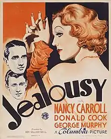 Jealousy is a 1934 American drama film directed by Roy William Neill and starring Nancy Carroll, George Murphy, Donald Cook and Raymond Walburn. The film was released on November 23, 1934 by Columbia Pictures.