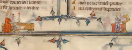 Jeanne and Richard Montbaston at work, from their copy of the Roman de la Rose.[3]