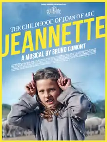 Jeannette: The Childhood of Joan of Arc (French: Jeannette, l’enfance de Jeanne d’Arc) is a 2017 French musical film directed by Bruno Dumont. It was screened in the Directors’ Fortnight section at the 2017 Cannes Film Festival.[1][2] It was followed two years later by the non-musical sequel Joan of Arc, which premiered at the 2019 Cannes Film Festival, written and directed by Dumont and with Lise Leplat Prudhomme reprising her role. The script is an adaptation of the play The Mystery of the Charity of Joan of Arc, written in 1910 by the Catholic author Charles Péguy.