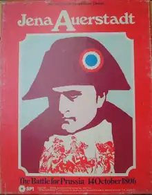 Jena-Auerstadt: The Battle for Prussia is a board wargame published by Simulations Publications Inc. (SPI) in 1975 that simulates the twin battles of Jena and Auerstadt in October 1806. It was one of four games that were part of the "quadrigame" (four games with a single set of rules) titled Napoleon at War, but it was also released as an individual "folio game" packaged in a shrinkwrapped cardstock folio. Jena-Auerstadt was rated highly in a 1976 poll of favorite wargames, but critics questioned whether its simplicity was capable of simulating a complicated two-part battle.