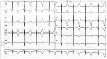 Jervell and Lange-Nielsen syndrome (JLNS) is a rare type of long QT syndrome associated with severe, bilateral sensorineural hearing loss.[2] Those with JLNS are at risk of abnormal heart rhythms called arrhythmias, which can lead to fainting, seizures, or sudden death. JLNS, like other forms of long QT syndrome, causes the cardiac muscle to take longer than usual to recharge between beats. It is caused by genetic variants responsible for producing ion channels that carry transport potassium out of cells. The condition is usually diagnosed using an electrocardiogram, but genetic testing can also be used. Treatment includes lifestyle measures, beta blockers, and implantation of a defibrillator in some cases. It was first described by Anton Jervell and Fred Lange-Nielsen in 1957.[3]