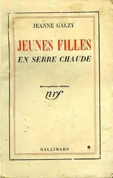 Jeunes filles en serre chaude (Young girls in a hothouse) is a 1934 novel by the French author Jeanne Galzy. Its protagonists are young women at the École normale supérieure de jeunes filles in Sèvres, a suburb of Paris, at the time a girls-only school. The school, which Galzy herself attended, trained girls especially as teachers for the secondary education system.[1] The background for the events in the novel is the 50th anniversary of the secondary school system for women;[2] it is one of many French novels and other (autobiographical) texts of the period in which authors' school and university experiences were recounted.[3]
