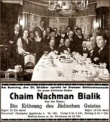 The Jewish community of Bielsko was very important and pioneered many activities on the borderline of between the world of Polish orthodox Jews and the German assimilated Reformed Jews. The first philanthropic association “B'nai B'rith” in Austro-Hungarian Empire was founded in Bielsko in 1889. The Jewish enlightenment (Haskalah) was developing rapidly here, few rabbis from Bielsko became professors at progressive seminaries in Wrocław and Berlin. Prof. Michael Berkowicz who lived in Bielsko was a friend of Theodor Herzl, and wrote a first translation to Hebrew of his Zionist manifesto “Der Judenstaat”.[5][4]