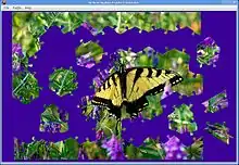 A jigsaw puzzle (with context, sometimes just jigsaw or just puzzle) is a tiling puzzle that requires the assembly of often irregularly shaped interlocking and mosaicked pieces, each of which typically has a portion of a picture. When assembled, the puzzle pieces produce a complete picture.