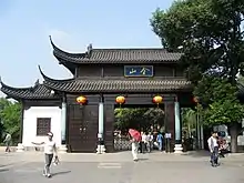The entire complex faces the west and has an exquisite layout in the order of the Shanmen, Four Heavenly Kings Hall, Mahavira Hall, Hall of Guru, Furong Tower, Qifeng Pavilion, and Cishou Pagoda.[2]