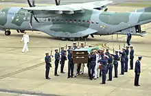 The political crisis of the Vargas administration deepened after one of his bodyguards was involved in an assassination attempt against UDN leader Carlos Lacerda on 5 August 1954.[58] Vargas was put under pressure by the media, which demanded his resignation.[59] On the early morning of 24 August 1954, Vargas called Goulart to Catete Palace and handed him a document to be read only after he arrived back in Rio Grande do Sul. It was his suicide letter Carta Testamento.[60][61]