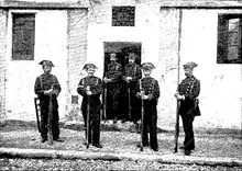 Bardina did not demonstrate political sympathies[29] until the mid-1890s; influenced by the spirit of fellow seminarians,[30] he neared Carlism. In 1895 he published first poems in the Carlist press,[31] signed with a histrionic pen-name "Valcarlos",[32] and kept contributing[33] to various Traditionalist titles;[34] his pieces featured belligerent tone and scarce maturity.[35] In 1897 he co-founded the Barcelona section of Joventut Escolar Tradicionalista,[36] an activity which triggered correspondence between the minister of justice and ecclesiastic authorities.[37] The same year Bardina joined a newly launched[38] Carlist satirical weekly in Catalan, Lo Mestre Titas,[39] and quickly emerged as one of its key contributors.[40]
