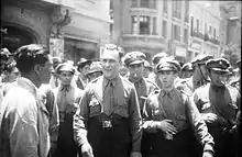 In 1932 Bardina set up another weekly on his own, La Semana Internacional. The periodical, very much a one-man show, kept appearing for some 15 years and was distributed in America and in Europe. It turned into his personal tribune; apart from review of international politics, it covered a vast array of other topics,[157] earning him position also abroad.[158] Le Semana demonstrated Bardina's increasingly democratic penchant[159] combined with concern about social issues and poverty. Initially sympathetic towards the Spanish Republic, he later started to view it as incapable of solving structural issues; following a period of hesitation, during the Civil War he tended to side with the Nationalists.[160] Posing as an impartial observer, he welcomed Falange's program[161] and Franco’s social legislation, considered “más acentuadamente social que la legislación obrera de la República”, yet he criticized Francoism for crackdown on Catalan and Basque culture.[162] Bardina's sympathy for Nazism[163] developed along the same lines; he considered Hitler[164] a champion of genuine democracy, the voice of the people, against façade democracy and capital-driven imperialism of Britain,[165] France[166] and their sidekicks like Poland.[167] Politically he neared Movimiento Nacional-Socialista de Chile of Jorge González von Marées.[168]