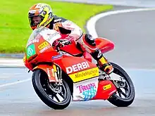 Joan Olivé Márquez (born 22 November 1984 in Tarragona, Catalonia, Spain) is a former professional Grand Prix motorcycle road racer. He has competed in the 125cc, 250cc, Moto2 and Moto3 World championships since he started to race professionally in the 2001 Grand Prix motorcycle racing season. After retiring from racing, he became the test/replacement rider for KTM's Moto3 project. In early 2019, Olivé was appointed team manager of the Marc VDS Racing team.[1]