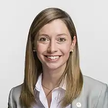 She began to become involved in politics as she was opposed to the fusion of her district La Tour de Trème with Bulle in 2006.[2] The political campaign failed, but she stayed in politics. After having taken part in political discussions in youth movements of both the Swiss People's Party (SVP) and the Christian Democratic People's Party (CVP)[5] she joined the youth wing of the FDP.[1] In 2010 she became the leader of the youth wing of the FDP[6] for which she stood as a candidate for the National Council in 2011.[1] Between 2016 and 2019 she was a member of the Municipal council of Bulle and the Grand Council of Fribourg.[7] She was elected into the Council of States in the Federal Elections in November 2019[8] as the youngest woman in Switzerland and the first one from the Canton of Fribourg.[5] She won by a small margin of 138 votes and replaced Beat Vonlanthen from the Christian Democratic People's Party (CVP).[8]