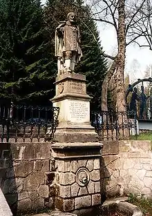 At the marketplace stands the Statue of the Town's Founder, Elector Johann Georg I of Saxony (1585–1656). It was carved out of Postelwitz sandstone in 1863 by sculptor Wilhelm Schwenk from Dresden and restored in 1984. Before it are some granite steps and a water-spouting bear's head referring to the Electoral hunts in the town's environs.