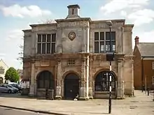 He was president of the Architectural Association in 1886-1887, vice-president of the Royal Institute of British Architects (RIBA) in 1914-1919, and president of RIBA in 1923-1925: the first provincial architect to be appointed president since the formation of the institute in 1834. In addition, he was vice-president of the Society of Antiquaries, a founder member of the Royal Fine Art Commission, a Trustee of the Soane Museum, and president of the Northamptonshire Association of Architects in 1911-1922. In 1924 he received an honorary M.A. degree from the University of Oxford. John Alfred Gotch was appointed the first Charter Mayor of Kettering in 1938.[12] In 2018 a blue plaque in honour of the architect, often cited as 'the man who built Kettering', was unveiled on the former Midland Bank building that he designed in Kettering High Street.[13][14]
