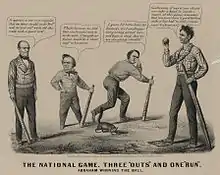 Louis Maurer cartoon depicting the 1860 presidential election as a baseball game; L to R: Bell, Douglas, Breckinridge, and Lincoln