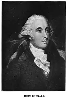John Bernard (1756 in Portsmouth, England 29 November 1828 in London)[1] was an English actor and biographer. He was the author of Retrospections of the Stage (1830) and Retrospections of America, 1797-1811.[2] He acted in a number of plays with Mary Ann Duff.[3] His son, William Bayle Bernard, was a playwright and critic, and edited editions of his Retrospections.