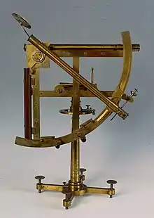 Mural quadrant constructed as a frame mounted on a wall. This instrument was made by Bird in 1773 and is in the History of Science Museum, Oxford.