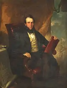 In 1841 Bramley-Moore was elected by Liverpool town council as an alderman,[3] an office which he held for 24 years.[4][5][6] In 1841 he became a member of the dock committee (afterwards called the dock board), and in the following year was appointed chairman. He worked for the 1846 arrangement with the Earl of Derby, by which two miles of the foreshore of the River Mersey, from the borough boundary to Bootle, became available for the construction of docks. After the opening of the Albert Dock by Prince Albert in 1846 he was offered a knighthood, which he declined. Five other docks were opened on 4 August 1848, one of them receiving the name of Bramley-Moore Dock.[2]