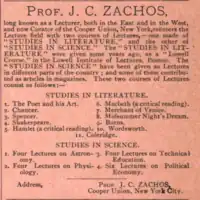 9. "Prof. J.C. Zachos". Worcester Daily Spy. Worcester, Mass. March 21, 1898. p. 5, col. 4. Archived from the original on June 13, 2023. Retrieved June 13, 2023. Obituary of Zachos