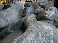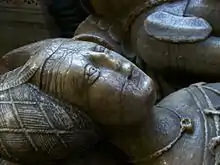 Effigies of John and Edmund Cokayne, Sir John's father and grandfather, in Asbourne parish church.