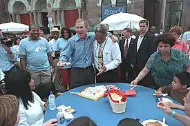 Mayor Street celebrating President George W. Bush's 55th birthday in Philadelphia.