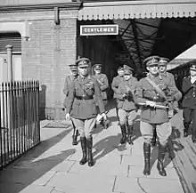 King George VI (left) with Major General John Grover (right) and several officers at a railway station at Gloucestershire, 1 April 1942.