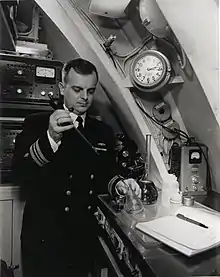 On 26 September 1957, President Dwight D. Eisenhower boarded the USS Seawolf at Narragansett Bay and was greeted by skipper Commander Richard B. Lanning and Rear Admiral Frederick B. Warder, Atlantic Fleet submarine force commander.[7] The President was briefed by Ebersole regarding radiation exposure aboard the Seawolf. According to the New York Times report: