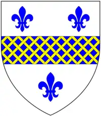 Hele married his step-sister[18] Mary (or Margaret[19]) Warwick (died 1571), a daughter and co-heiress of Ellis (alias Elizeus[11]) Warwick of Holbeton[9] and of Batsborow,[12] in the parish of St Budeaux, both in Devon. The arms of Warwick, quartered by Hele (being the arms of his son Sir Warwick Hele), are visible on the monument to Sir John Hele in Wembury Church: Argent, a fess azure fretty or between three fleurs-de-lys of the second.[17] By his wife he had eight sons and two daughters[20] (whose kneeling effigies appear on the base of their father's monument in Wembury Church), including: