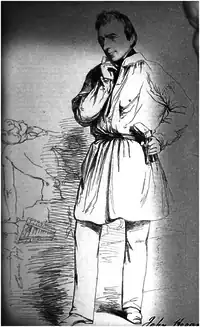 In 1823, the engraver William Paulet Carey visited Cork, and impressed with Hogan's talent began to publicise his work in order to raise subscriptions for him to study in Italy. Hogan arrived in Rome, by way of Dublin and Liverpool, in 1824. He worked in the galleries of the Vatican, but could not afford a studio. Additional subscriptions allowed him to improve his situation, rent a studio, purchase marble, and hire models. Danish sculptor Bertel Thorwaldsen said to him, "My son, you are the best sculptor I leave after me in Rome".[5]