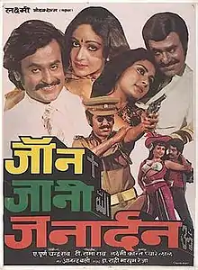 John Jani Janardhan is a 1984 Hindi film directed by T. Rama Rao. Rajinikanth played the main lead in a triple role. John being the father and Johnny and Janardhan being the two sons. It is a remake of the 1982 Tamil film Moondru Mugam, which also starred Rajinikanth.[1]It is the only movie in Bollywood with triple role to become a massive hit. [2]