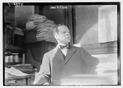 John Kirkland Clark, Sr. (January 21, 1877 - January 20, 1963) was a New York City assistant district attorney under Charles S. Whitman, the New York County District Attorney. He was appointed to investigate and prosecute cases of corruption.[1] He was president of the New York State Board of Law Examiners from 1921 his retirement in 1943.