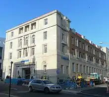 This has a curved façade which rounds the corner from Grand Parade to Richmond Place. It is a "nicely composed and detailed Neo-Georgian" building distinguished by unusually large arched windows on the upper floor.[1][23]