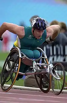 He participated in the demonstration wheelchair 1500 m event at the 2000 Sydney Olympics, but crashed 1,150 metres (3,770 ft) into the race.[11] He competed as a T54 athlete at that year's Paralympics, where he was part of the Australian team in the 4x400 m relay, reached the semi-final of the 1500 m event, was disqualified in the semi-final of the 5,000 m event after a crash for "obstruction of the track", came ninth in the 10,000 m event, and was the best-placed Australian man in the marathon in his classification, finishing twelfth.[21][22][23][24][25]