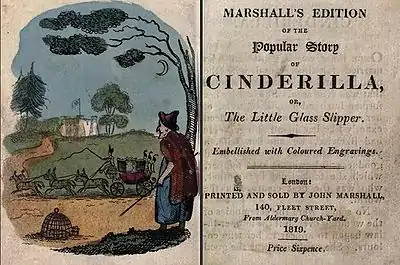 Marshall was an early innovator in coloured picture books for children, illustrated with hand-coloured etchings. During the early 19th century, he published editions of many traditional fairy tales such as Cinderella, Puss in Boots and Aladdin, along with accumulative rhymes and games such as "This Is the House That Jack Built", "The Barn that Tom built", and "The Gaping Wide-mouth'd Waddling Frog", with hand-coloured illustrations.[18] He was also noted for a range of books of humorous verses illustrated by the caricaturist Isaac Robert Cruikshank.