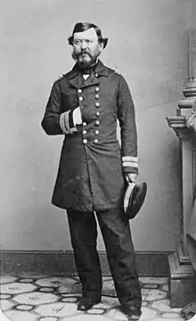 Goldsborough took command of the newly commissioned sidewheel steamer USS Florida in the South Atlantic Blockading Squadron on 5 October 1861, was again successful in capturing blockade runners, and participated in the capture of Fernandina, Florida, on 3 March 1862. He was promoted to captain on 16 July 1862 and that summer took command of a settlement of former slaves at St. Simons Island, Georgia. In March 1863 he became commanding officer of the steam frigate USS Colorado in the Western Gulf Blockading Squadron and took charge of the blockade of Mobile, Alabama, with Colorado capturing the schooner Hunter on 17 May 1863. He left Colorado in November 1863 and took up ordnance duty at Portsmouth Navy Yard in Kittery, Maine, remaining in that position through the end of the war in April 1865.[3][8]