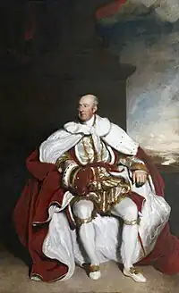 John Rolle, 1st Baron Rolle (1750–1842) in his peerage robes. Portrait by Thomas Lawrence (1769–1830). Collection of Great Torrington Almshouse, Town Lands and Poors Charities, displayed in Great Torrington Town Hall. Donated by Lord Clinton