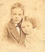 Amberley had two sons and twin daughters, one of whom was stillborn. The eldest child, Frank, was born nine months after their marriage. Rachel Lucretia and her stillborn sister were born prematurely on 2 March 1868, at St. Martin, London, shortly after the couple's return from a tour of North America; the surviving daughter was named after Lucretia Mott, the social reformer whom the couple had met in Boston. In 1870, Lord and Lady Amberley bought Ravenscroft, a country home near Chepstow in Monmouthshire, where he was a magistrate, and spent their time enjoying nature and domestic life.[4] Their youngest and most prominent child, Bertrand, was born in 1872. Amberley asked John Stuart Mill to be Bertrand's secular godfather, and Mill accepted.[9]