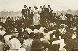 Socialist Party activists Slayton and Mrs. A.J. Meng address strikers during the 1909 McKees Rocks Strike.