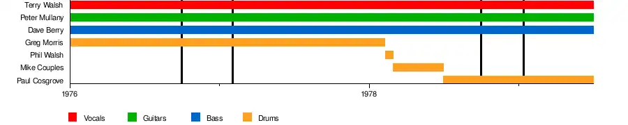- Terry Walsh (a.k.a. Johnny Dole) – lead vocals (1976 - 1979)