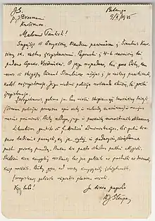 When the Polish newspaper Dziennik Poznański criticized Aušra for its anti-Polish attitudes and separatism, Šliūpas engaged in a debate with its editors regarding the cultural and historical relationship between Poland and Lithuania. Šliūpas rebuked the criticism but expressed hope for Polish–Lithuanian friendship and cooperation. He published the letters in Aušra attracting attention from the German police which saw elements of Pan-Slavism.[38] Suspicions further increased when Šliūpas and Jankus toured Lithuanian villages and called for the establishment of the Lithuanian Scientific Society. Its founding meeting in January 1884 was interrupted by the police.[39] Eventually, Šliūpas was given 30 days (to 15 March 1884) to leave East Prussia. Using Jankus' passport, he returned to Lithuania.[40]