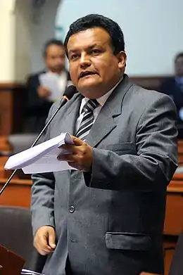 In the 2006 elections, he was elected to the Congress to represent his home region, on the joint Peruvian Nationalist Party-Union for Peru list. After the split of the alliance, he sat on the Nationalist bench. In the 2011 elections, he was re-elected on the Peru Wins list. In December 2011, after Salomón Lerner resigned as Prime Minister of Peru, Ollanta Humala appointed him as Minister of Production. Afterwards in 2012 he briefly served as Minister of Defense after the resignation of Luis Alberto Otárola and was replaced by Pedro Cateriano in July 2012.