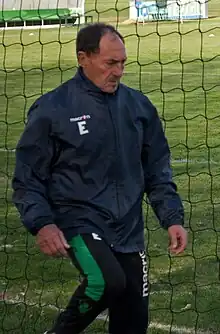 In Esnaola's first year, the Andalusians returned to the top division as champions, and with the best defensive record in the competition. In the 1977 final of the Copa del Rey, against another Basque side, Athletic Bilbao, he conquered his only piece of silverware in an epic final: 2–2 after regulation and 8–7 in the penalty shootout, where he stopped three shots and scored the winner, beating counterpart José Ángel Iribar;[3][4] Betis were relegated at the end of the following campaign.[5]